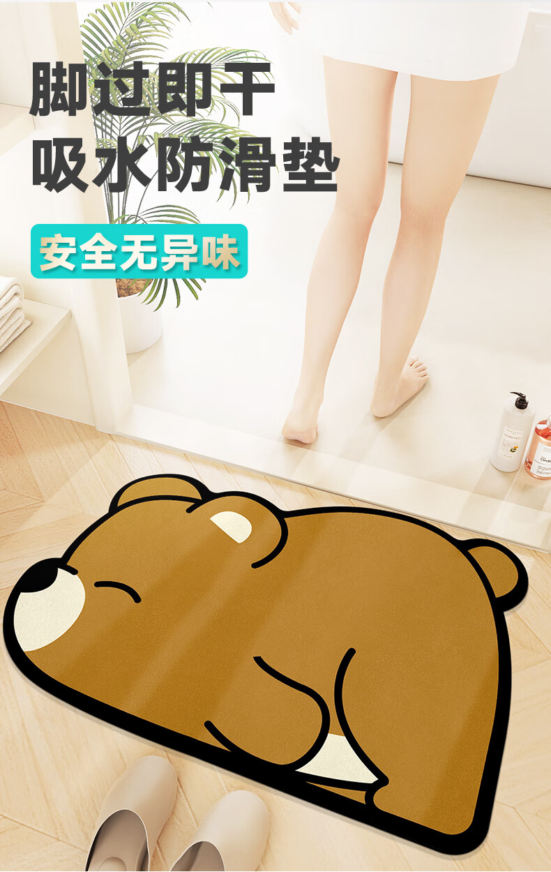 大江科技绒浴室地垫吸水防滑速干40x60cm 大大棕熊