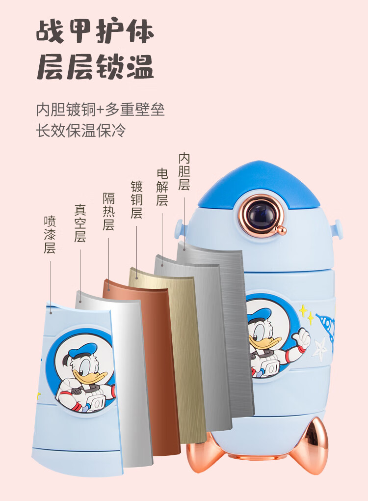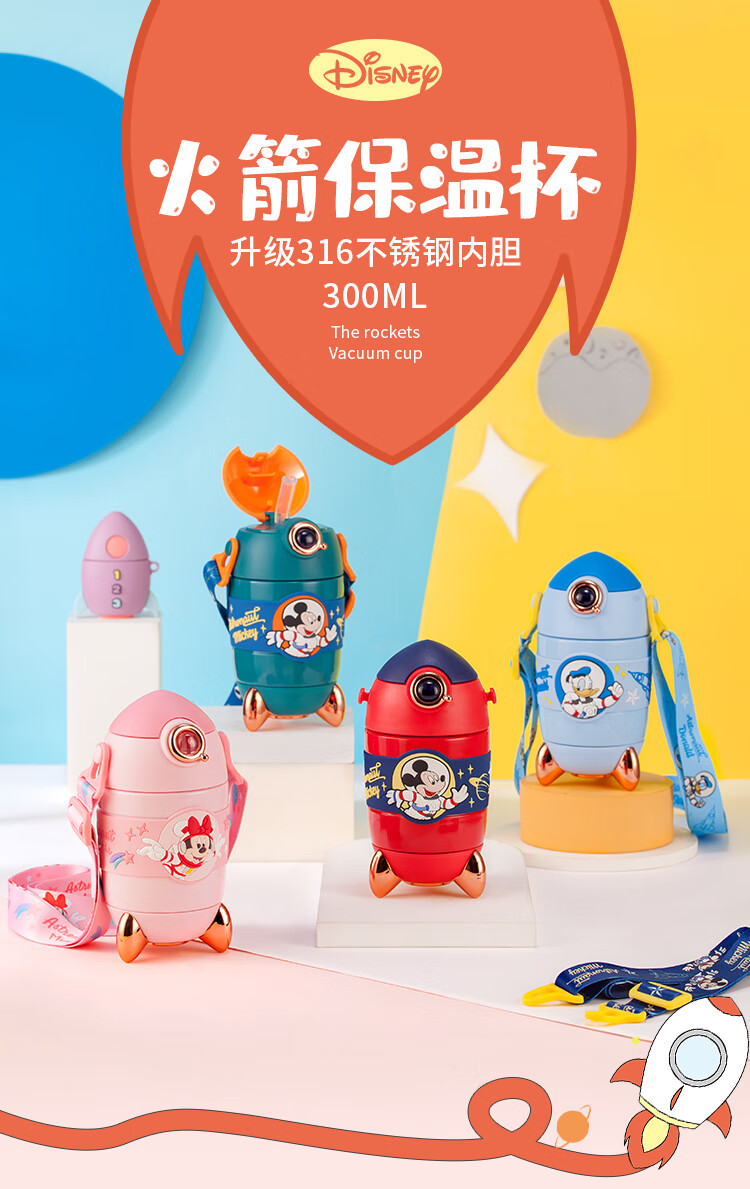 迪士尼儿童水杯 宝宝便携火箭真空保温吸管杯 米妮300ML
