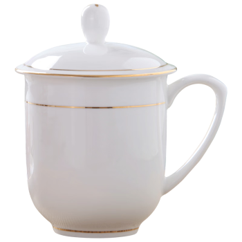茶杯 陶瓷盖杯中号骨瓷水杯金边会议杯办公杯酒店商务喝茶开会杯子360ml