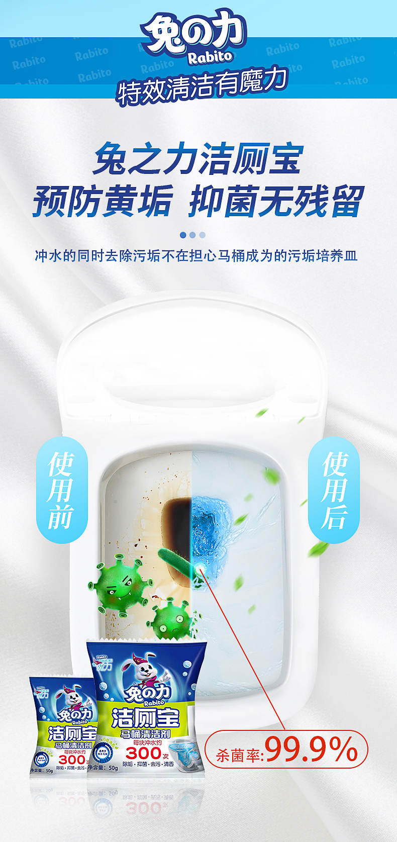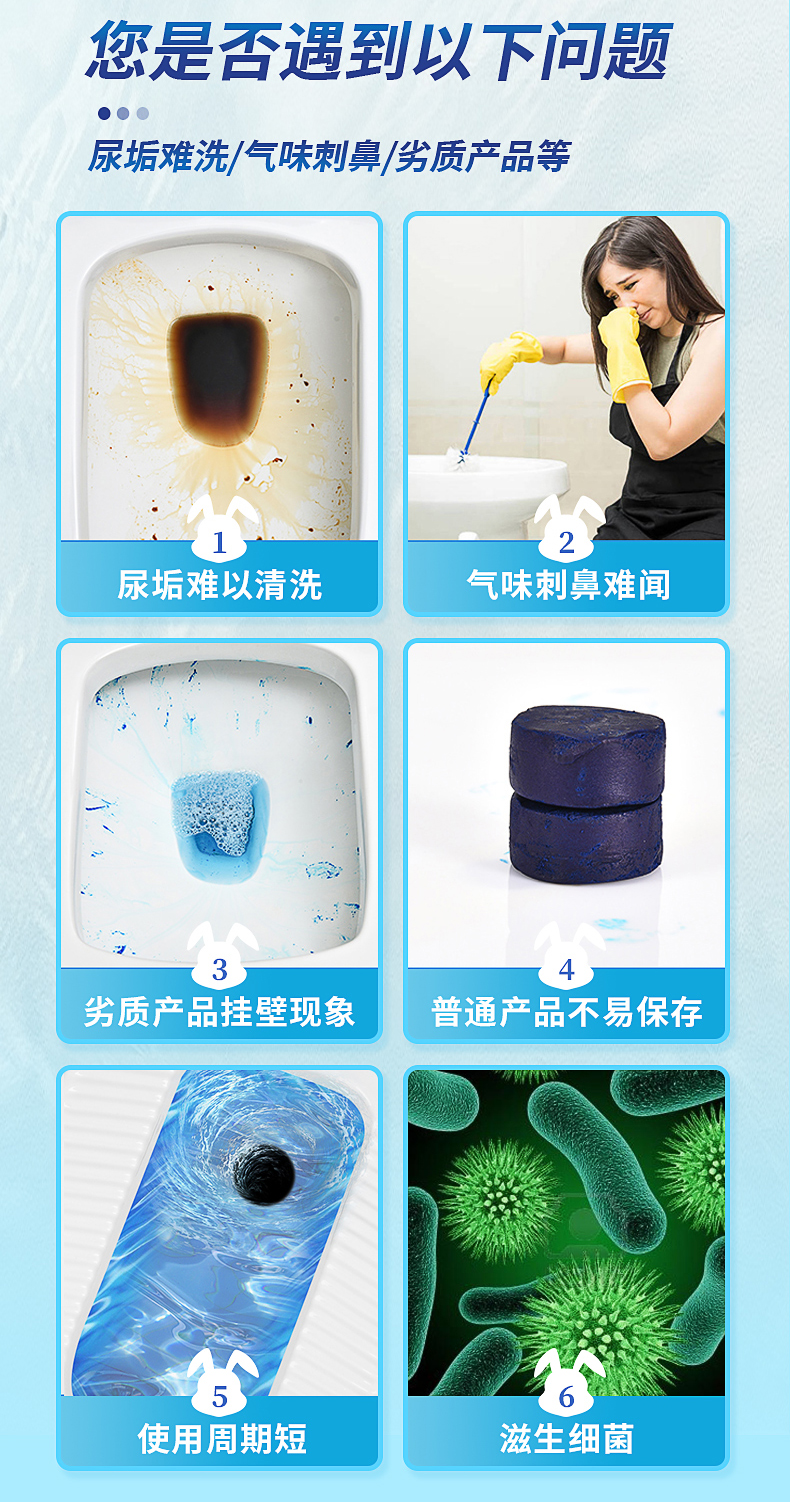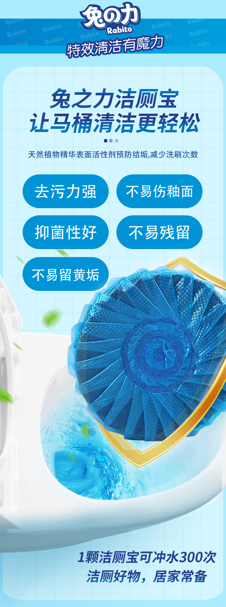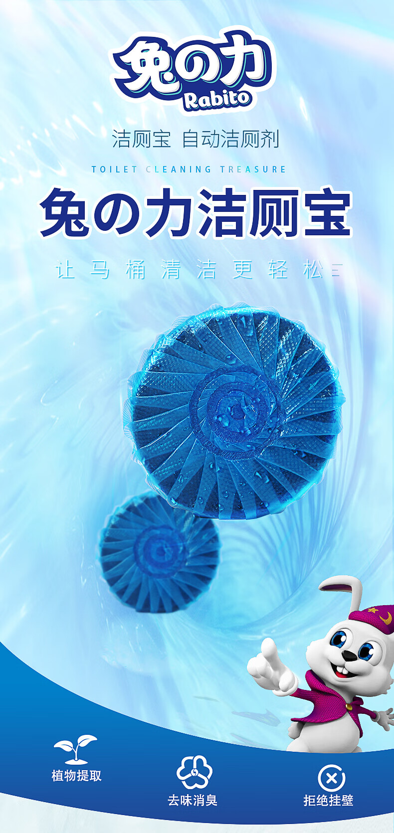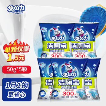 兔の力洁厕灵马桶清洁剂 蓝泡泡洁厕宝除垢去异味 洁厕宝50g*5粒