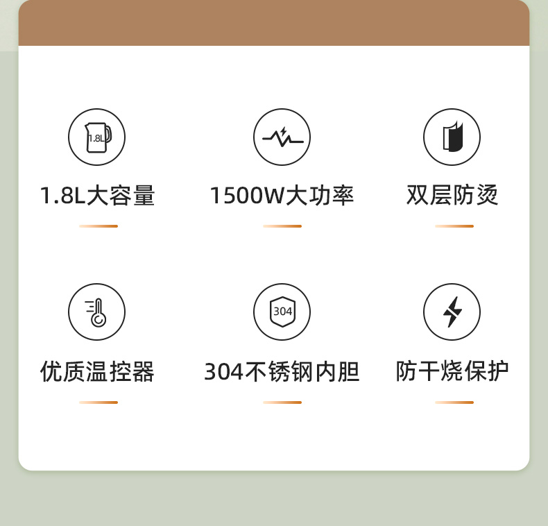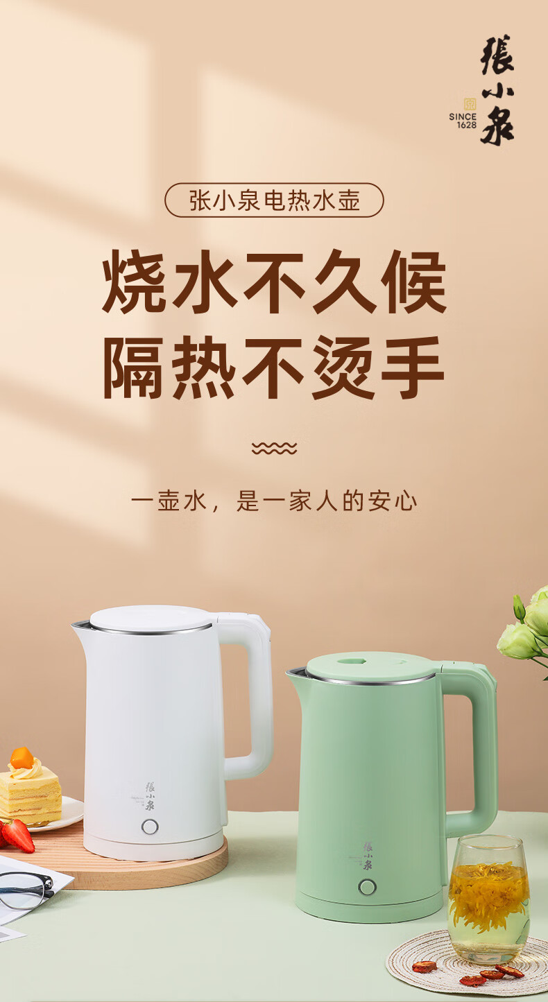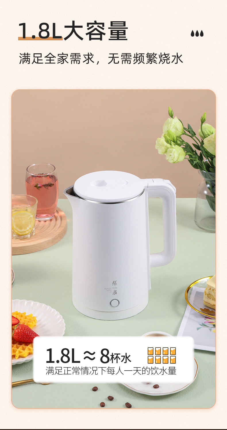 张小泉电水壶热水壶烧水壶开水壶大容量1.8L不锈钢双层防烫自动断电水壶