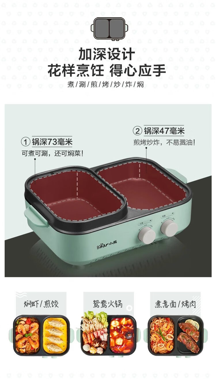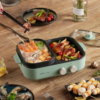 小熊涮烤一体锅烤肉盘家用多功能电烤盘涮烤电烤炉 绿色 DKL-C12J5